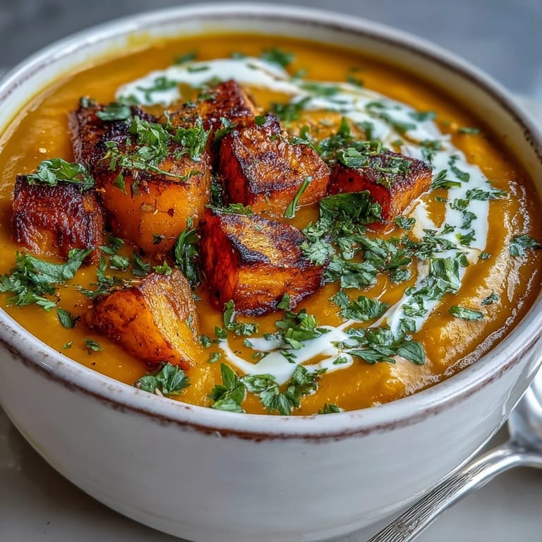 Save to Pinterest Last October, my friend texted me a photo of butternut squash at the farmer's market with the simple message: "Make something good." I stood in my kitchen that evening, the squash halved on my cutting board, and decided to roast it until its edges turned golden and caramelized. That choice changed everything—suddenly, a simple soup became something with actual depth, a dish that tasted like autumn decided to move in permanently.