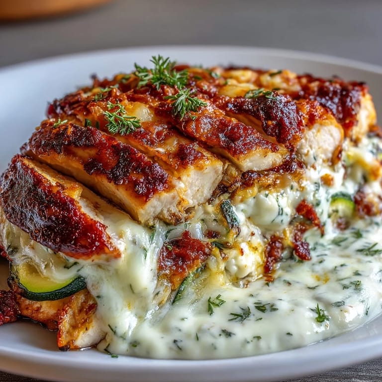Save to Pinterest I was staring into my fridge on a Tuesday night, holding a bag of zucchini that needed using and leftover chicken breast I'd bought on sale. The idea hit me while I was already halfway through slicing: what if I treated this like a lasagna, but swapped the noodles for something lighter? I grabbed my Greek yogurt, cracked a couple eggs, and just started layering. That first bake came out bubbling and golden, and I remember thinking it tasted way better than it had any right to, given I'd barely followed a plan.