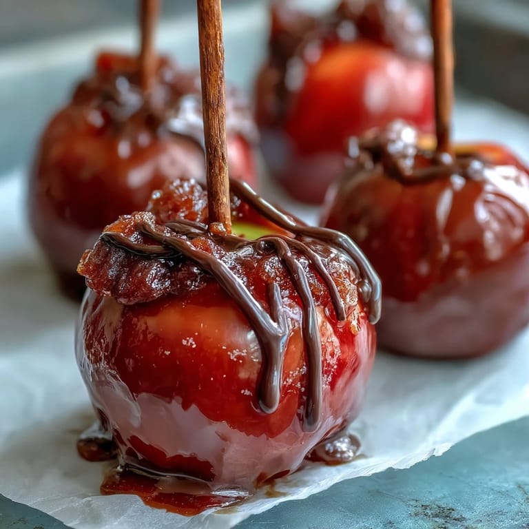Save to Pinterest There's something magical about classic red candy apples that instantly transports us back to childhood memories of fall festivals, Halloween parties, and bustling fairgrounds. These glossy, ruby-red treats combine the crisp tartness of fresh apples with a shatteringly sweet candy shell, creating a delightful contrast that's impossible to resist. Elevated with an elegant drizzle of creamy white chocolate, these candy apples aren't just nostalgic—they're a show-stopping dessert that brings joy to gatherings and celebrations throughout the autumn season.