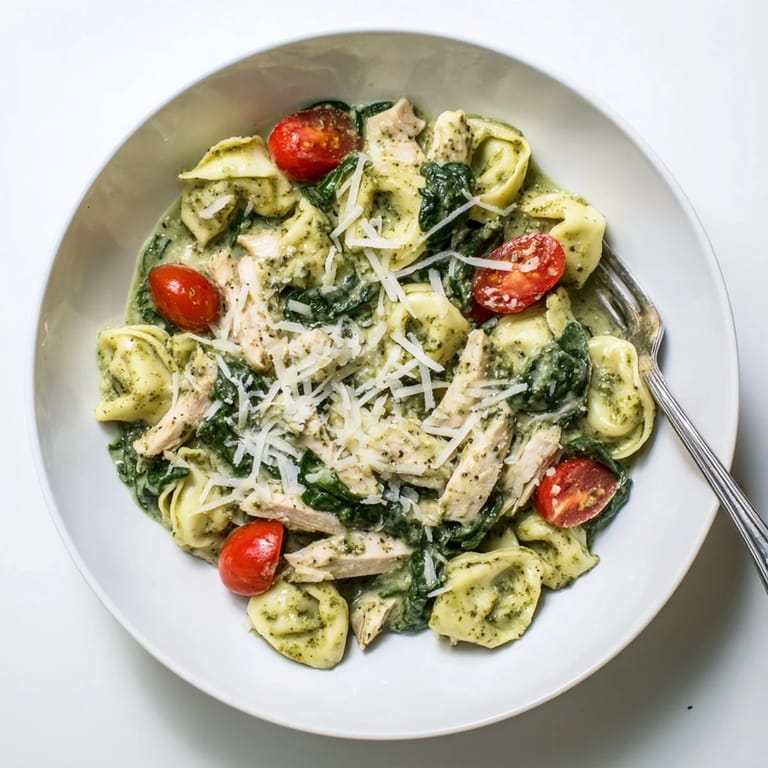 Save to Pinterest The Tuesday evening I discovered this recipe, I was standing in my kitchen staring at a rotisserie chicken from the grocery store, exhausted from work, and remembering how my mother used to transform leftover chicken into something magical. That night, this creamy pesto tortellini skillet came together in twenty minutes, and my roommate wandered in from her room asking what smelled like an Italian restaurant had taken over our apartment.