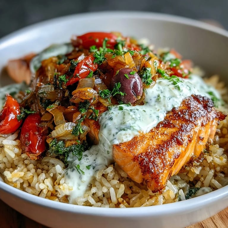 Save to Pinterest Last summer, my neighbor dropped off fresh-caught salmon from his fishing trip, and I had a small bag of leftover jasmine rice in the fridge. Instead of the usual routine, I decided to crisp that rice in a hot pan until it turned golden and nutty, then topped it with the salmon and whatever Mediterranean vegetables I could find. The kitchen filled with this incredible aroma of caramelized rice mixed with herbs, and honestly, it felt like I'd stumbled onto something special without even trying.