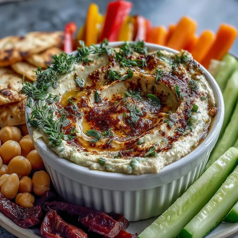 The hummus base is intentionally neutral so it lets the vegetables shine, but you can absolutely elevate it with a light sprinkle of paprika, zaatar, or a tiny drizzle of olive oil before you add the vegetables. I've also stirred in a teaspoon of lemon juice or a pinch of cayenne when I want something more interesting, and each tweak completely transforms what feels like the same snack into something new. Seasonal changes matter too—in winter I lean into roasted root vegetables and celery, while summer gets bright with zucchini, radishes, and blanched green beans.