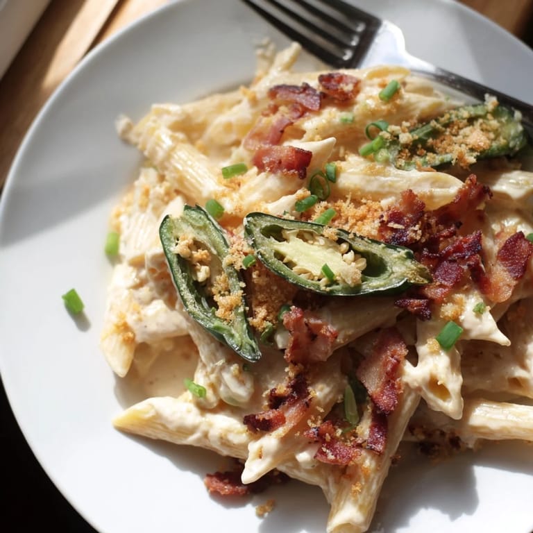 Save to Pinterest My neighbor brought over a plate of jalapeño poppers during a summer cookout, and halfway through one, I thought: this needs to be pasta. The cream cheese, the heat, the crunch of bacon, it all just made sense swirled into something I could twirl on a fork. I went home that night and sketched out a rough plan on a grocery receipt. By the next evening, I had a skillet full of creamy, spicy, ridiculously satisfying pasta that tasted like the best parts of a party appetizer without any of the fuss.