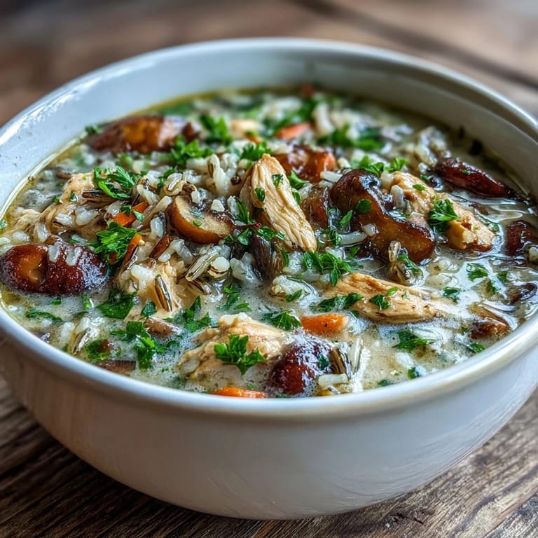 Save to Pinterest There's something about the first really cold snap of autumn that sends me straight to the kitchen with mushrooms and wild rice on my mind. My neighbor mentioned she'd been craving something hearty but not heavy, and that afternoon I threw together this soup almost by accident, letting the mushrooms do most of the talking while the wild rice quietly soaked up all that savory broth. The moment she tasted it, the way her eyes lit up told me I'd stumbled onto something special.